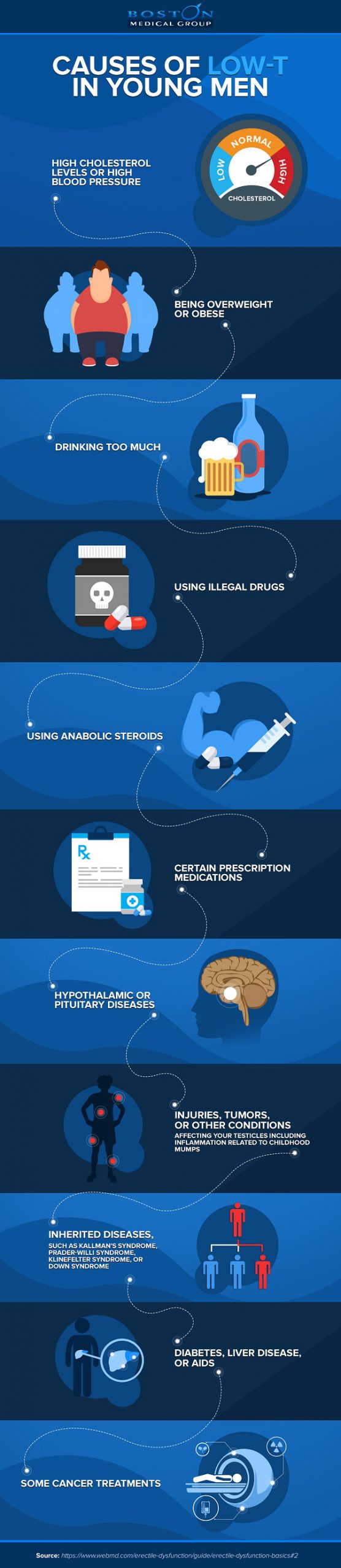 Male hypogonadism at a young age is often caused by a combination of lifestyle, medical, and hormonal factors. In many cases, multiple contributing factors are present at the same time.